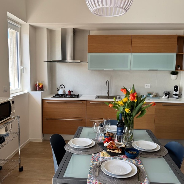 BariAmò, appartamento recentemente e finemente ristrutturato, BariAmò è in posizione strategica, difronte alla stazione ferroviaria e dei terminal pullman e navette per l'aeroporto, in un quartiere servitissimo da bar, ristoranti e supermercati. L'appartamento è situato al 5 piano con ascensore di uno stabile signorile.