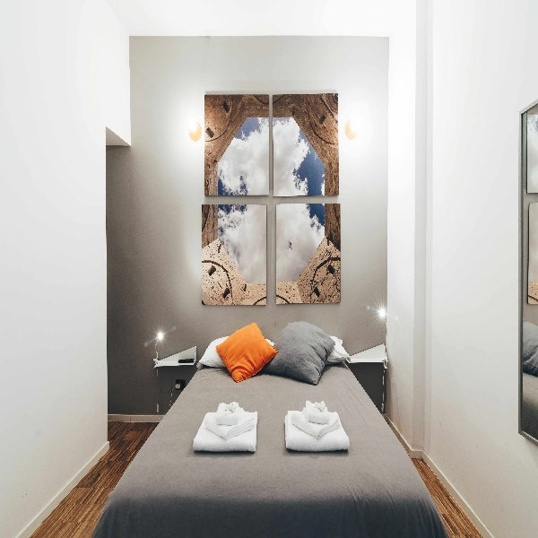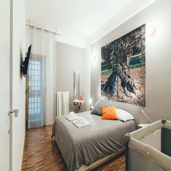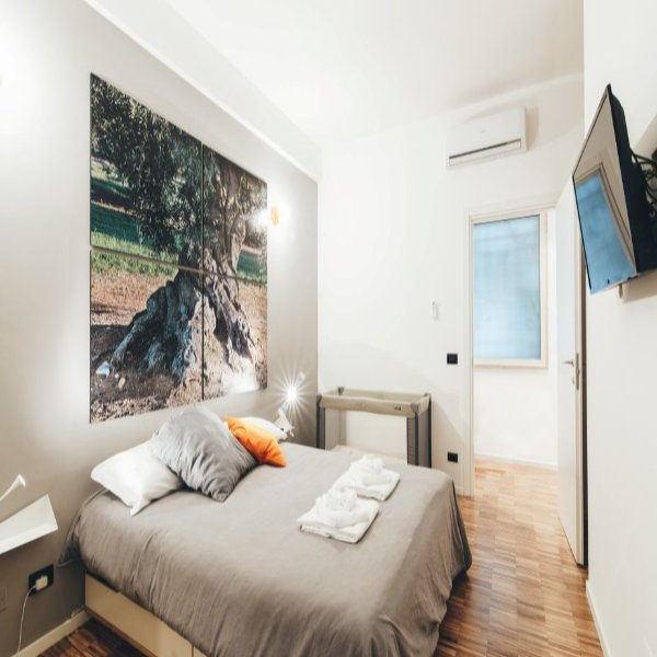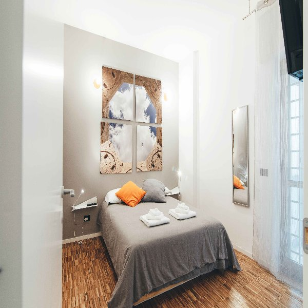 Just Here Apartments - La Terrazza. L’appartamento si trova nei pressi della Stazione Centrale e a pochi metari dalla centralissima Corso Cavour. Lo stile sobrio ed elegante è padrone anche in questa soluzione e la sua caratteristica principale è la presenza di una grande terrazza dove potersi rilassare e passare dei piacevoli momenti. Composto da due camere con letto matrimoniale, cucina attrezzata e bagno.
