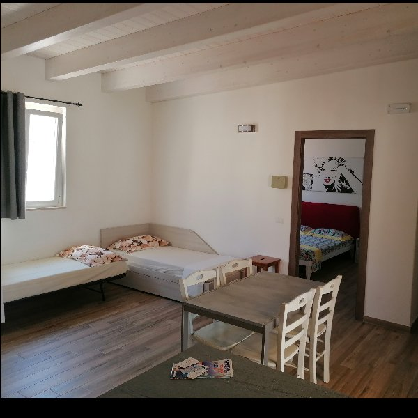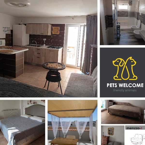 Bilocale con 4 posti letto e monolocale con 2 posti letto(+culla al bisogno) con materassi ortopedici, reti a doghe, lavatrice, bagno con doccia, cucina con stoviglie, ampio terrazzo con copertura frangisole, tavolo e sedie, wi fi zone gratis, aria condizionata. Sono ammessi amici a 4 zampe. Fitto settimanale; sconti per più settimane.