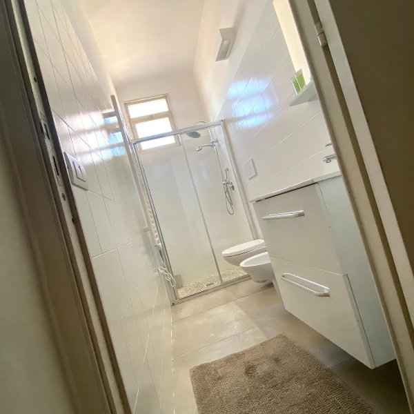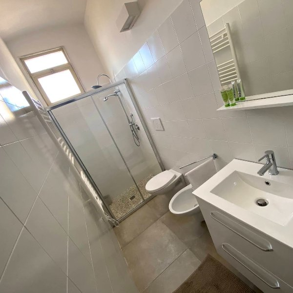 Si compone di n.1 bagno, n.1 cucina-soggiorno attrezzata (completa di stoviglie/posate e utensili) con divano letto matrimoniale, n.2 camere da letto matrimoniali + n.1 culla aggiuntiva (se richiesta).