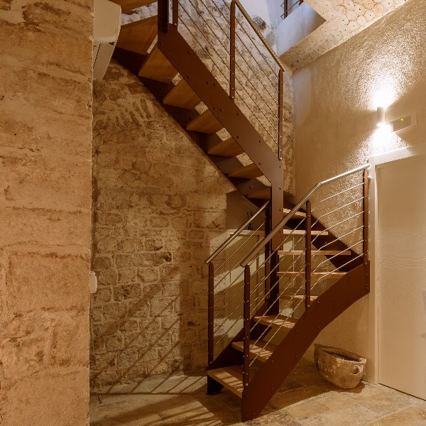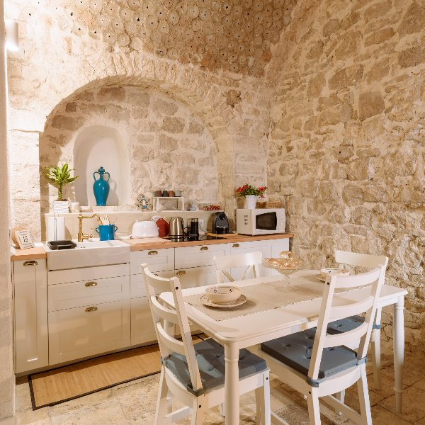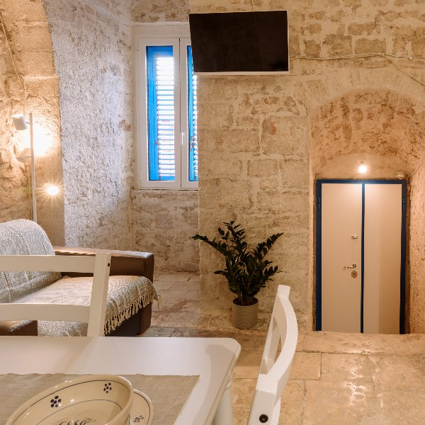 Zefiro è una graziosa casa vacanze nel cuore del borgo antico di Casamassima, il paese azzurro. La casa si sviluppa su due piani. Al primo piano abbiamo allestito una zona giorno con cucina attrezzata e abbiamo realizzato un bagno ad hoc nella pietra. Da una meravigliosa scala interna a giorno realizzata da maestranze pugliesi si sale verso la zona notte dove abbiamo ricostruito il solaio in legno, posizionato a pavimento delle bellissime cementine, realizzato un bagno con doccia e ridato vita a un balcone che si affaccia direttamente sul centro storico.